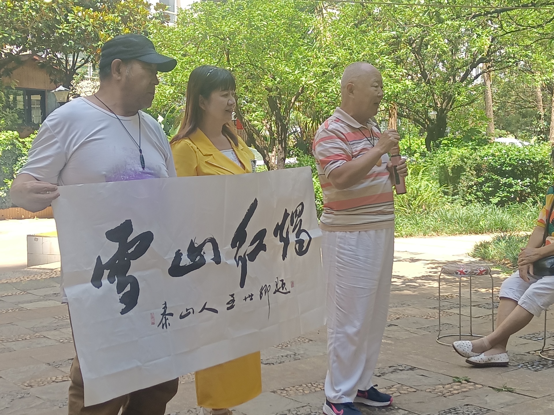 2023年6月28日下午来到卖卖堂的老师们,真是多才多艺,舞蹈、歌唱、说来就来,现场即兴表演,大家玩的特别开心。好的艺术,是用心血、思想和灵魂进行创作。著名的书法家们挥毫泼墨书写下了电影《雪山红烛》,现场颁发了收藏证书。这是一部红色电影,讲述在云南做免费乡村教师,以及对当地的帮助,也彰显出当代青年人的社会责任感和情系边疆、无私奉献、不畏艰难、献身教育的精神。