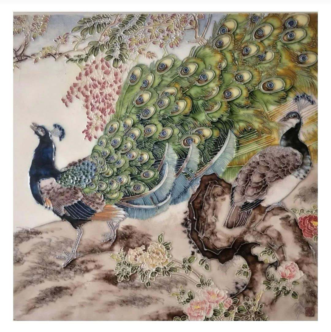 肖玉红:女,1972年生于河南洛阳,中国唐三彩康艺美陶董事长。国家级工艺美术师,中国炎黄画院非遗文化艺术交流中心主任。唐三彩”是中国古老文艺术的宝贵遗产。瓷板画工艺作品,继承发扬了唐三彩的传统技艺,在平面和立体造型的素胚上经过立线、施釉及烧制窑变等工序,通过各种釉色的熔入流动,自然参合,犹如浮雕,出现一种人工书彩难以达到的艺术效果是中国的国粹和人类共同的文化瑰宝。