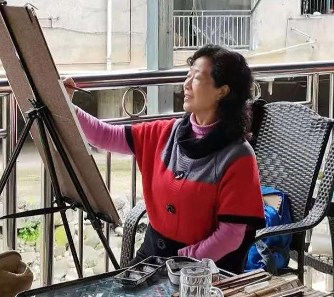 廖荣:四川乐山人,现为乐山市美协会员,乐山市老年书画研究会会员,乐山市沫水画院院士,师从成都市著名山水画家施秉伟老师,其作品《蜀道不再难》入选四川省政协书画展,《幽居蜀山》入选乐山市政协书画展。《青城探幽》入选乐山市纪念“五一”画展优秀奖,《清溪绕春前》入选全国老年书画展获优秀奖。《渔歌晚唱》入选乐山市迎春画展。《烟波荡群山》入选乐山市纪念抗日战争胜利70周年画展。《古镇烟云》入选乐山市纪念建国70周年画展。