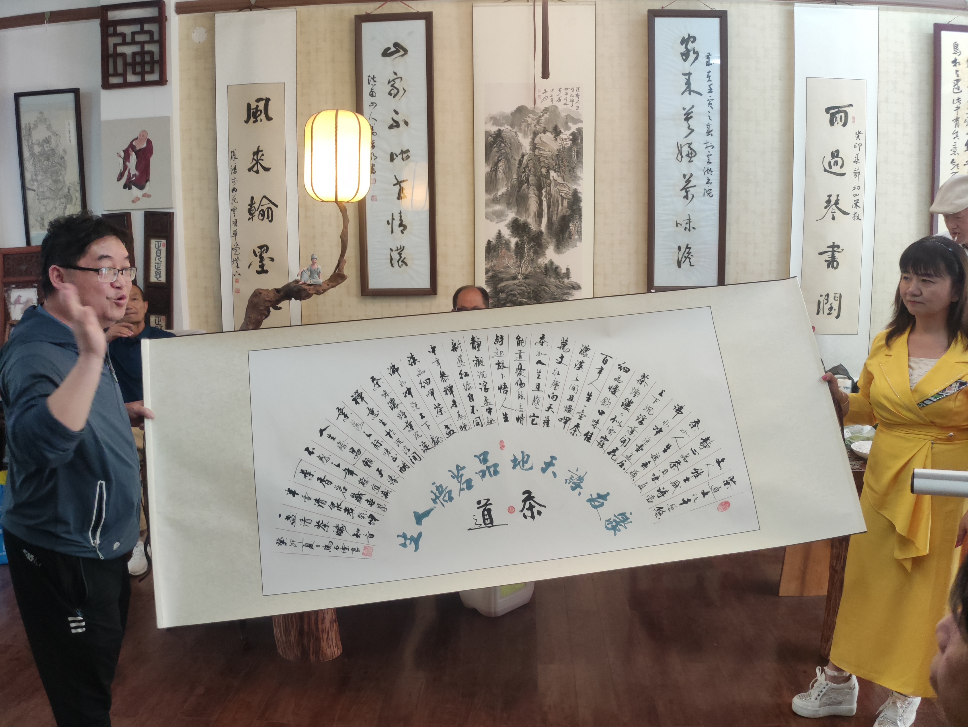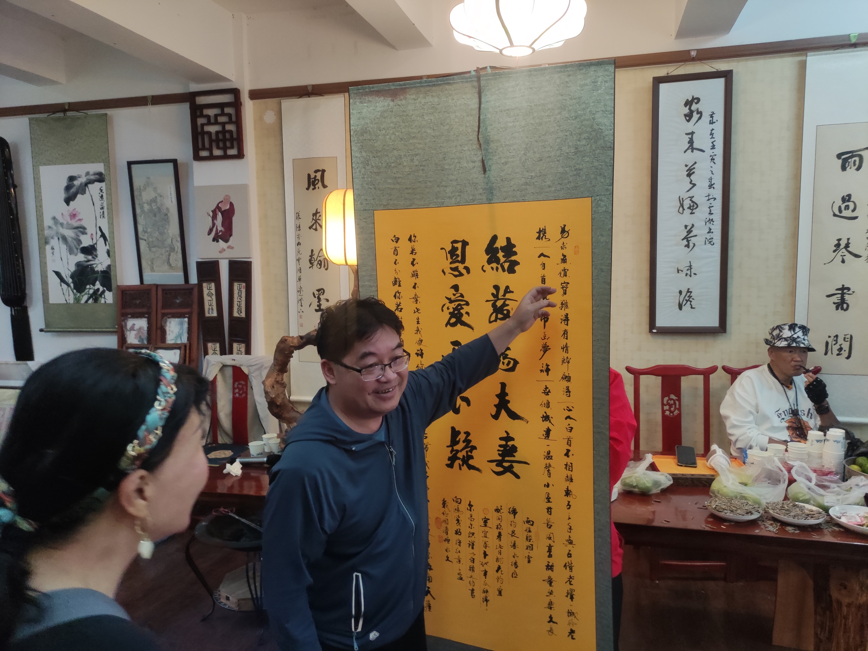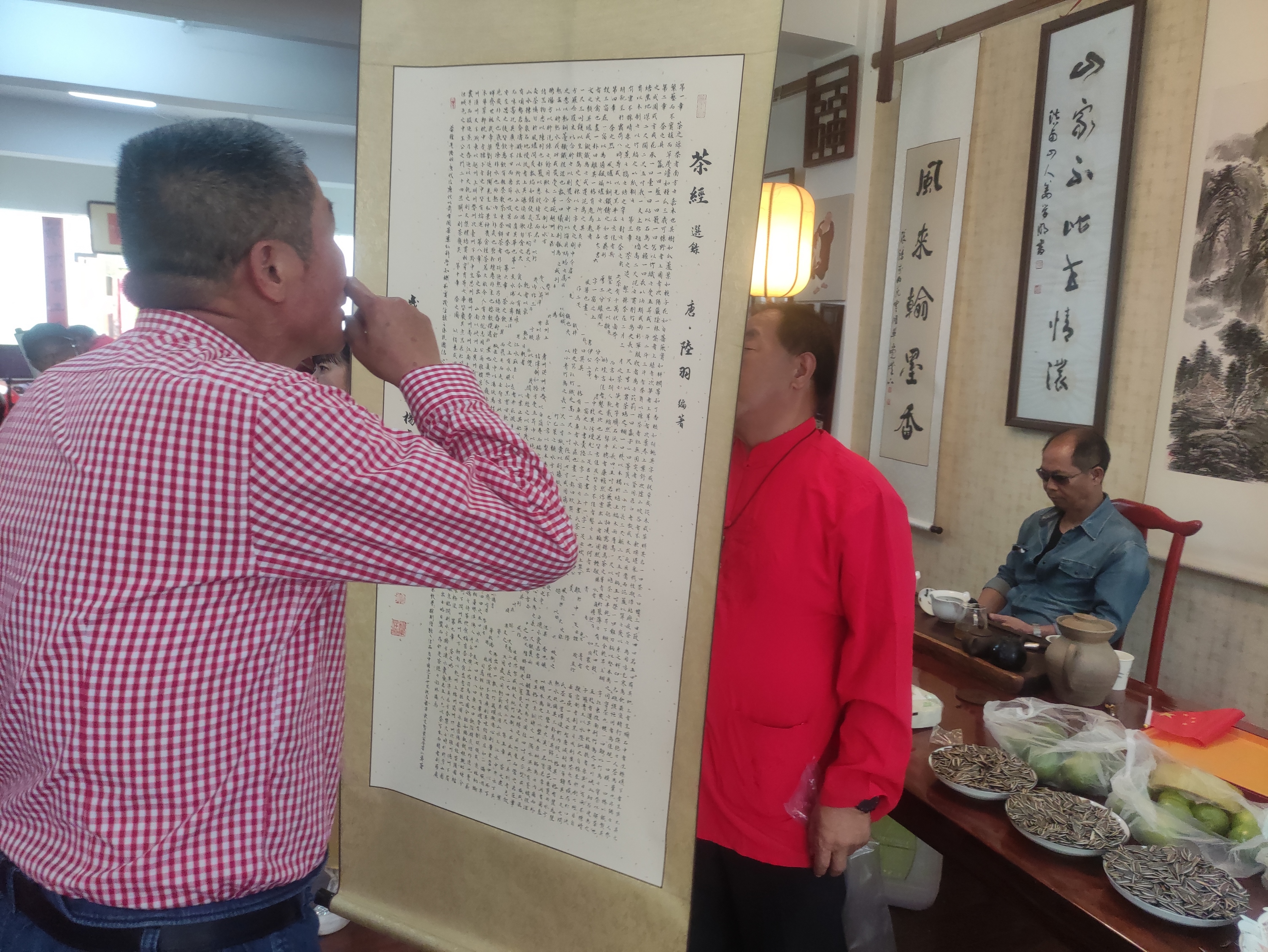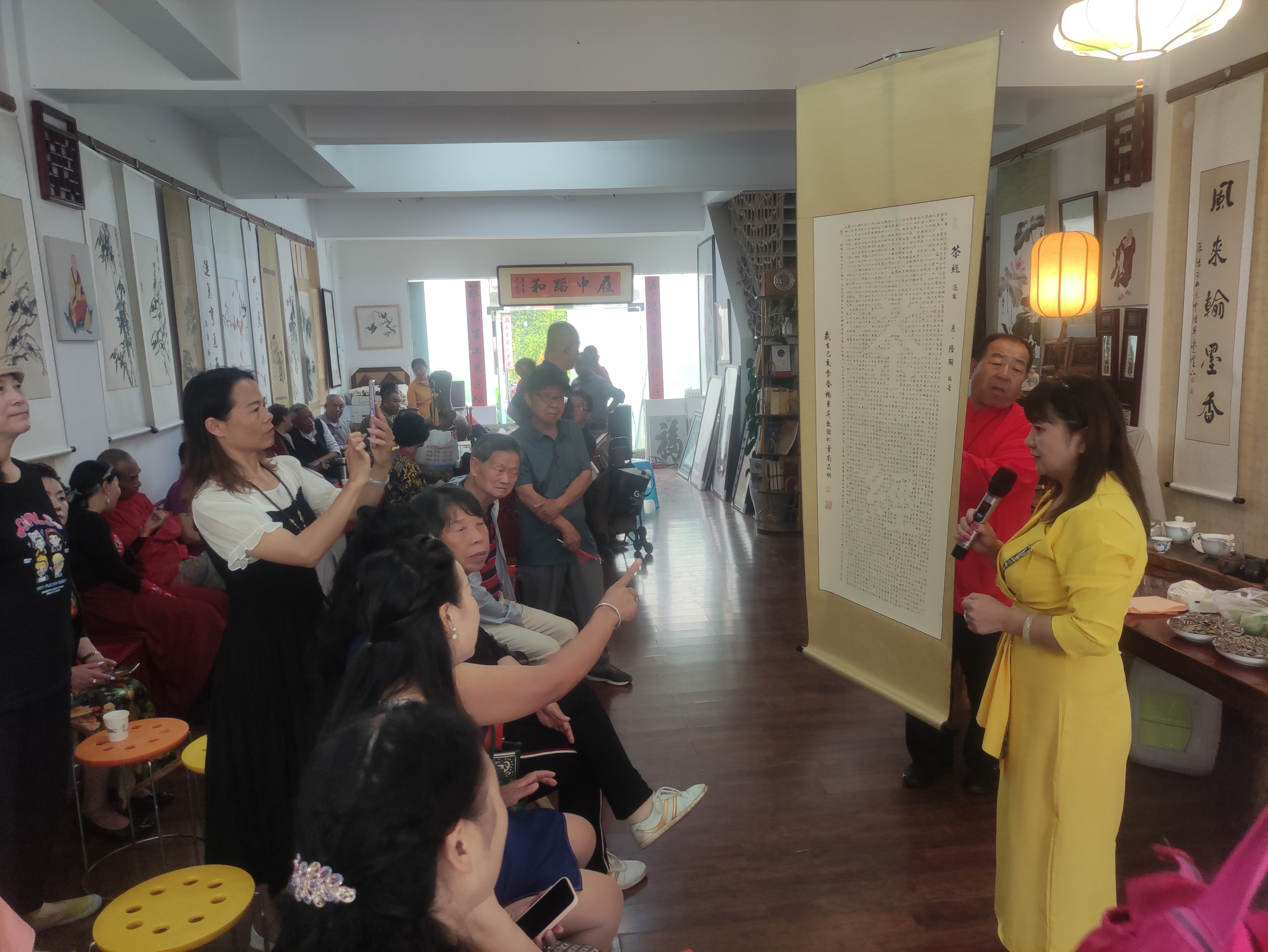 要说起云湖书院,确实是上档次,场地室内空气清新,鸟语花香,很有书香气味。著名普洱茶茶书主席韩立宇老师,著名书法家马石云老师,著名书法家潘云黔老师,著名画家蔚绍根老师,著名画家周巧林老师,著名书法家田道富和著名画家郑连云老师,等等名家老师们到现场展示精品之作,简直就是锦上添花。