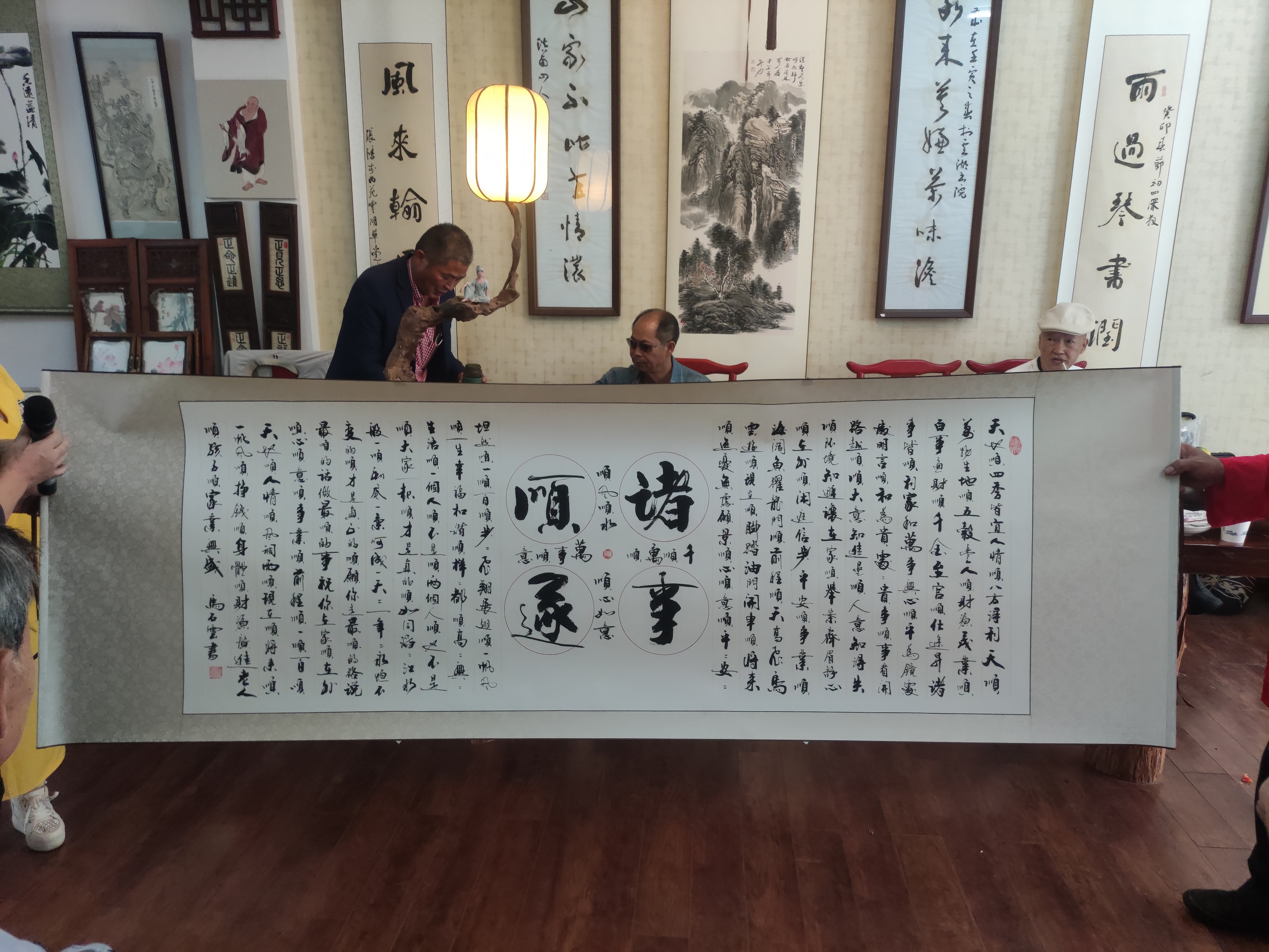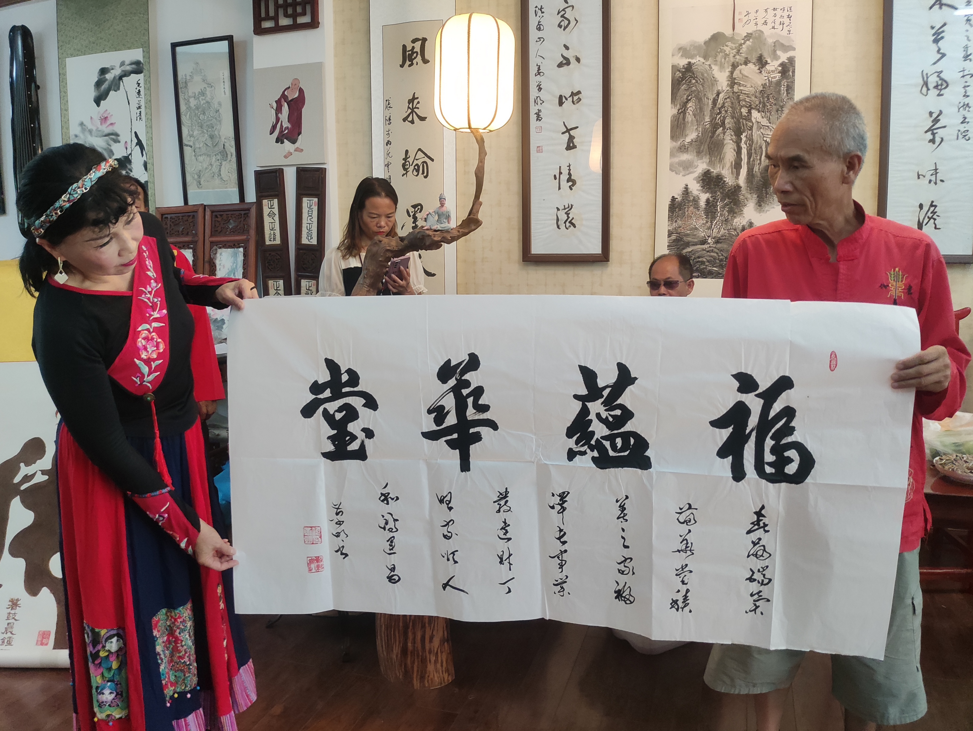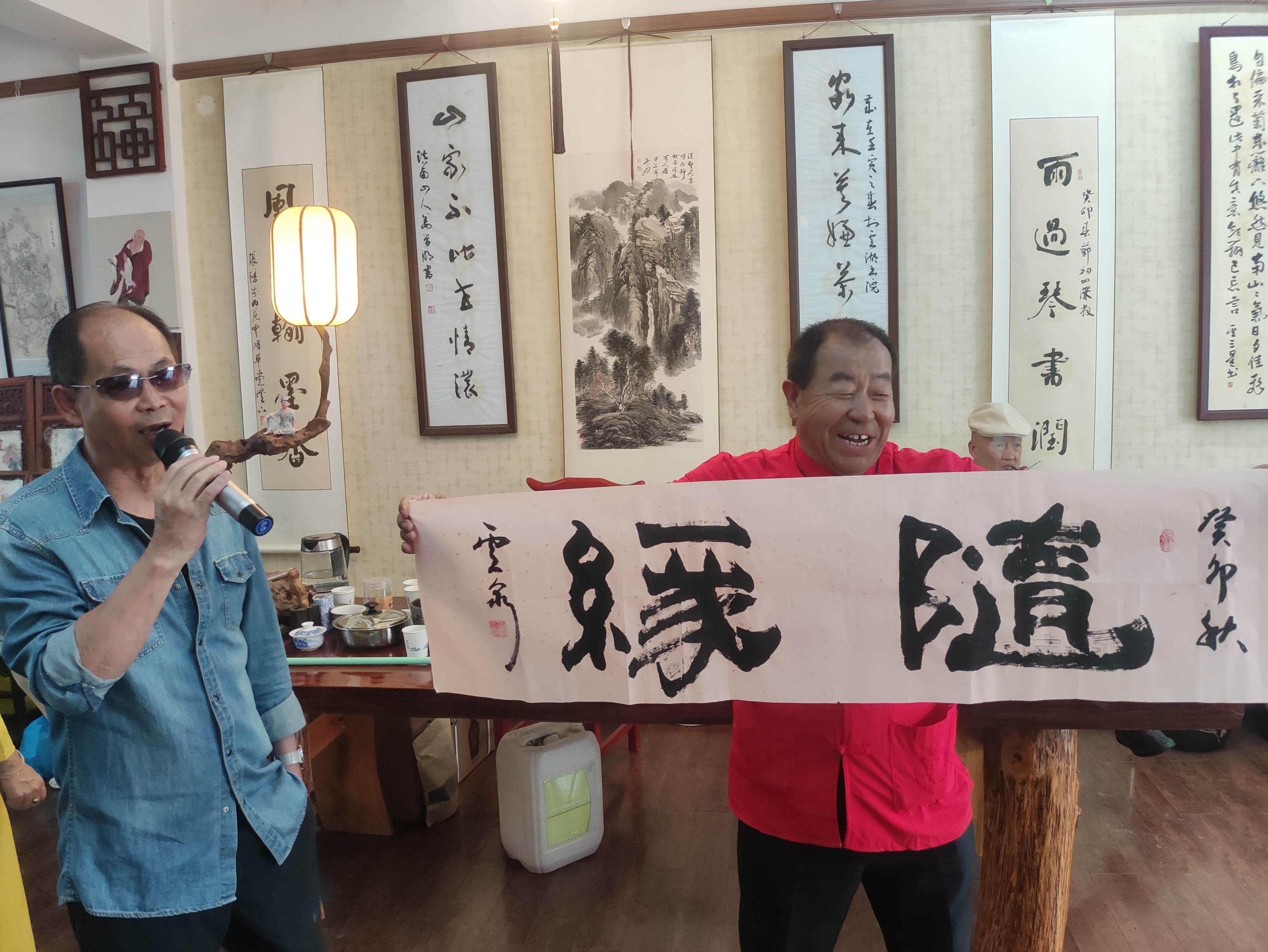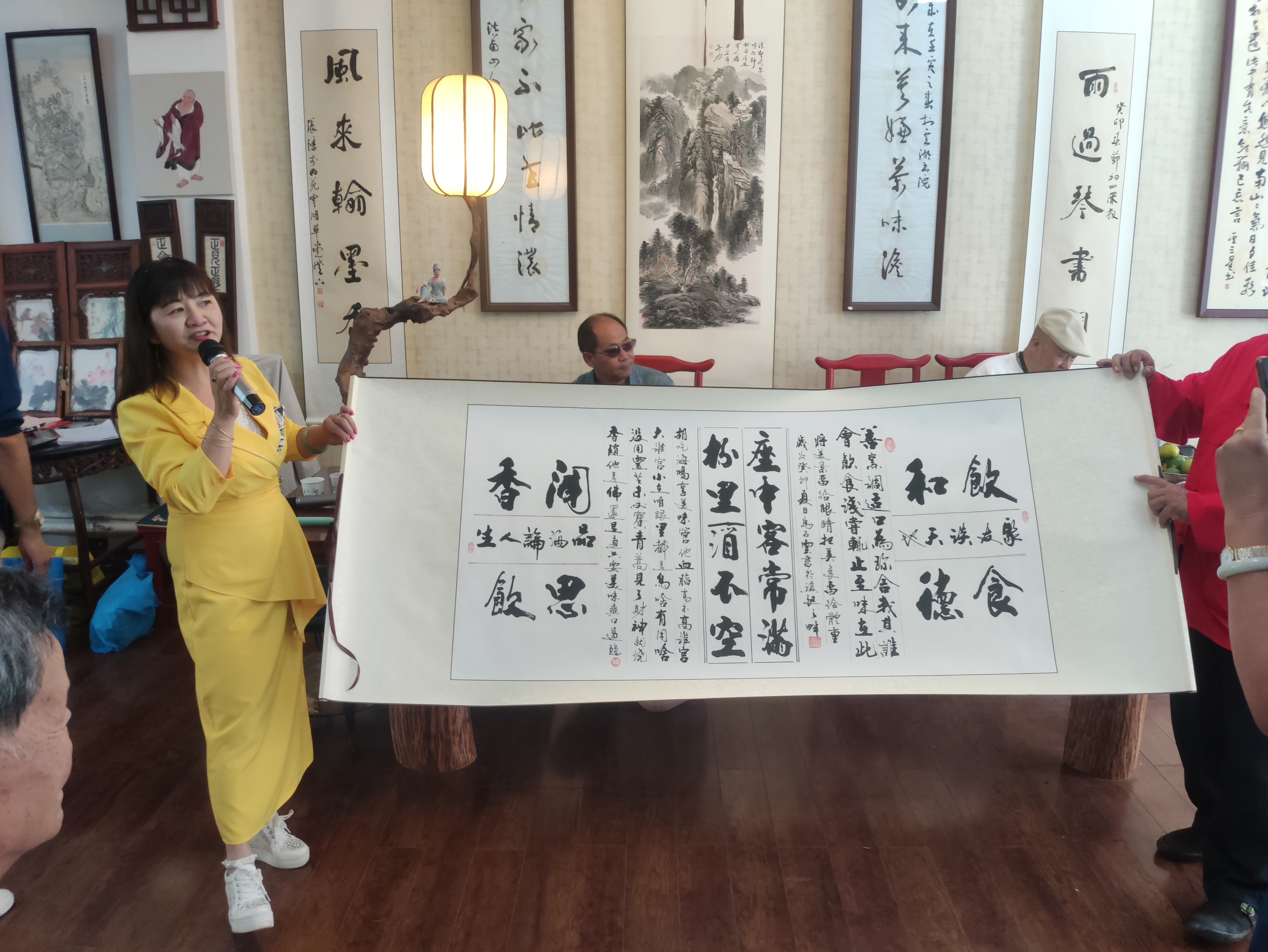 要说起云湖书院,确实是上档次,场地室内空气清新,鸟语花香,很有书香气味。著名普洱茶茶书主席韩立宇老师,著名书法家马石云老师,著名书法家潘云黔老师,著名画家蔚绍根老师,著名画家周巧林老师,著名书法家田道富和著名画家郑连云老师,等等名家老师们到现场展示精品之作,简直就是锦上添花。