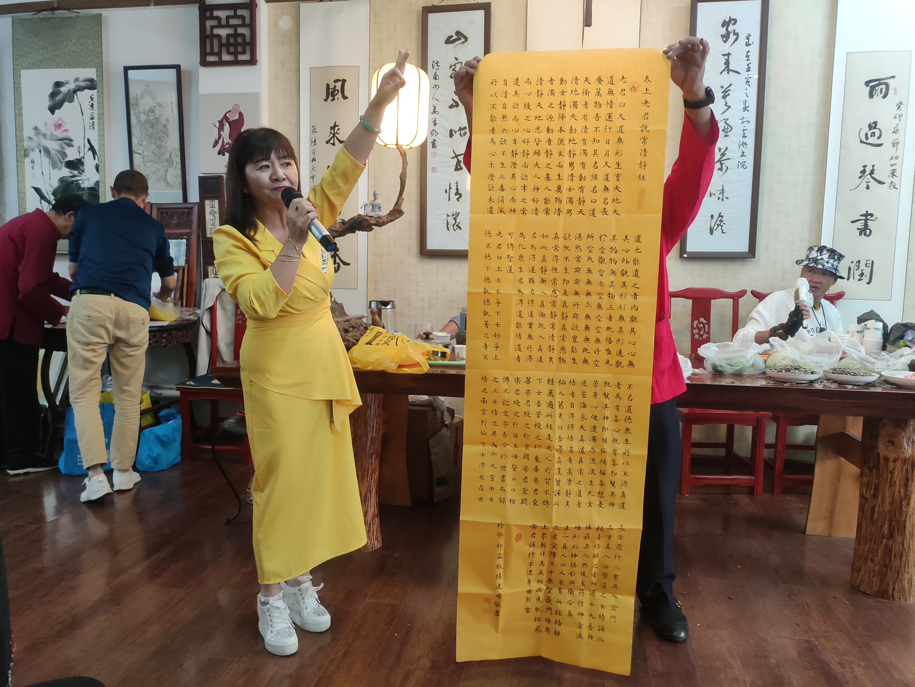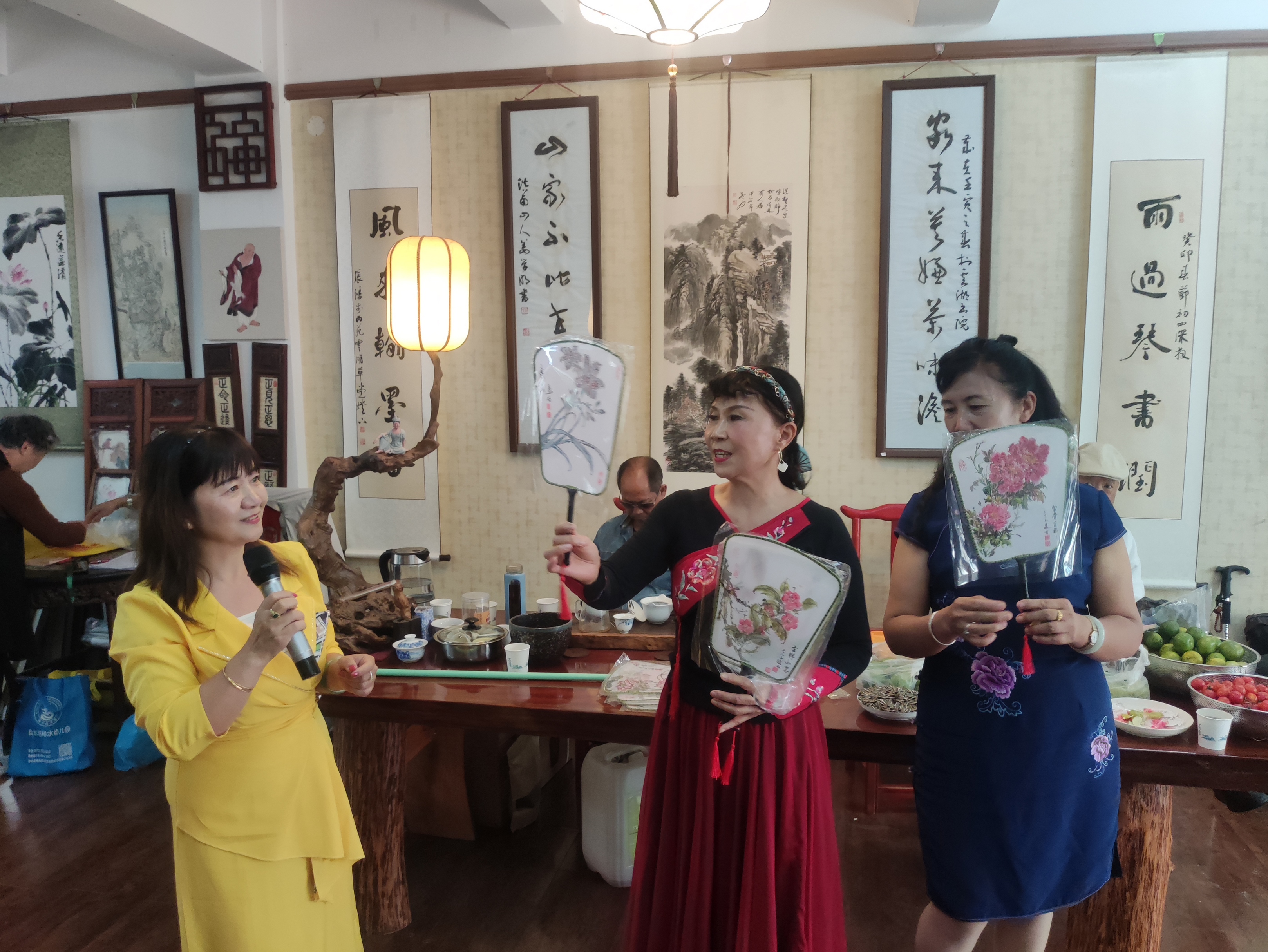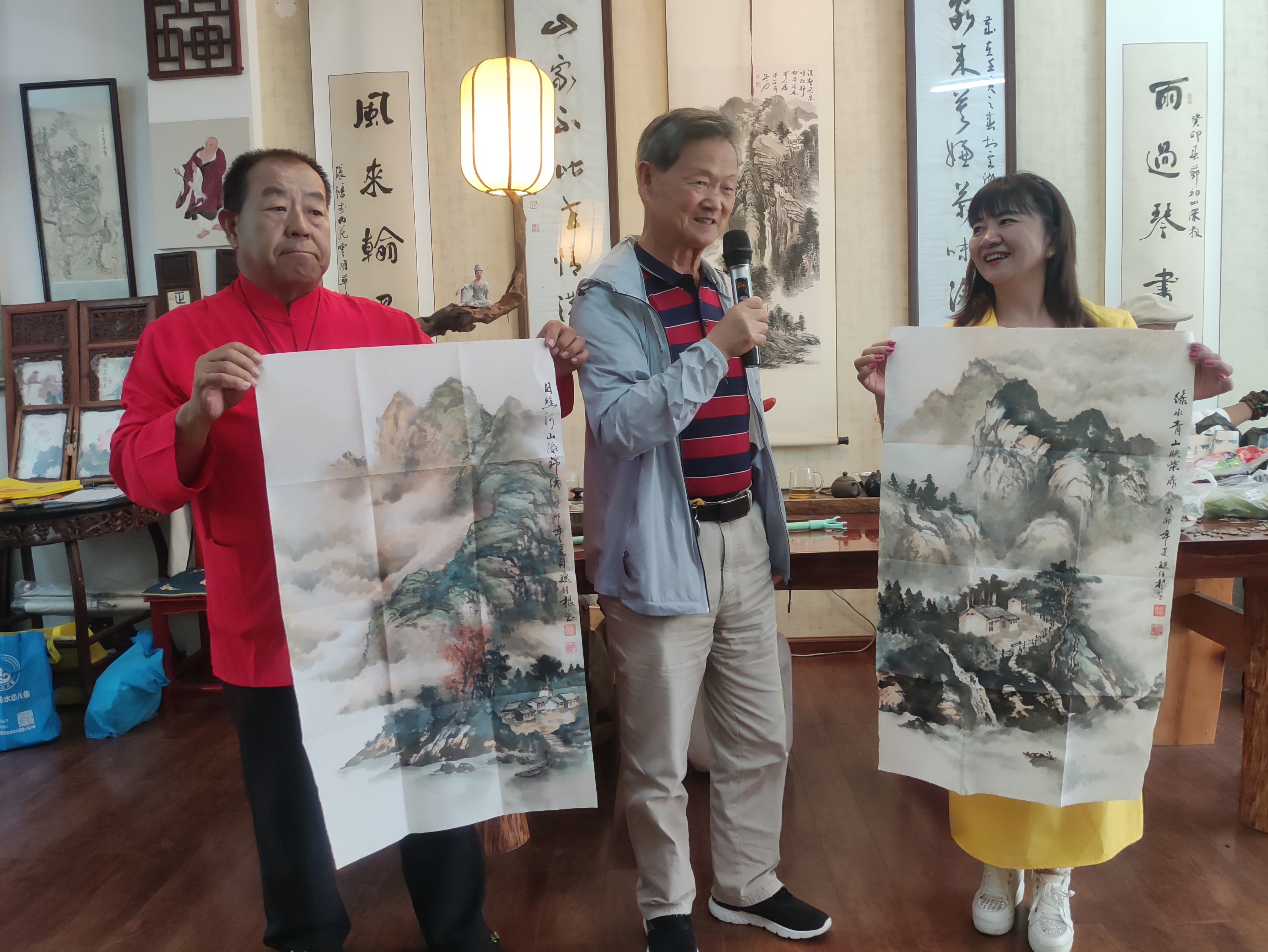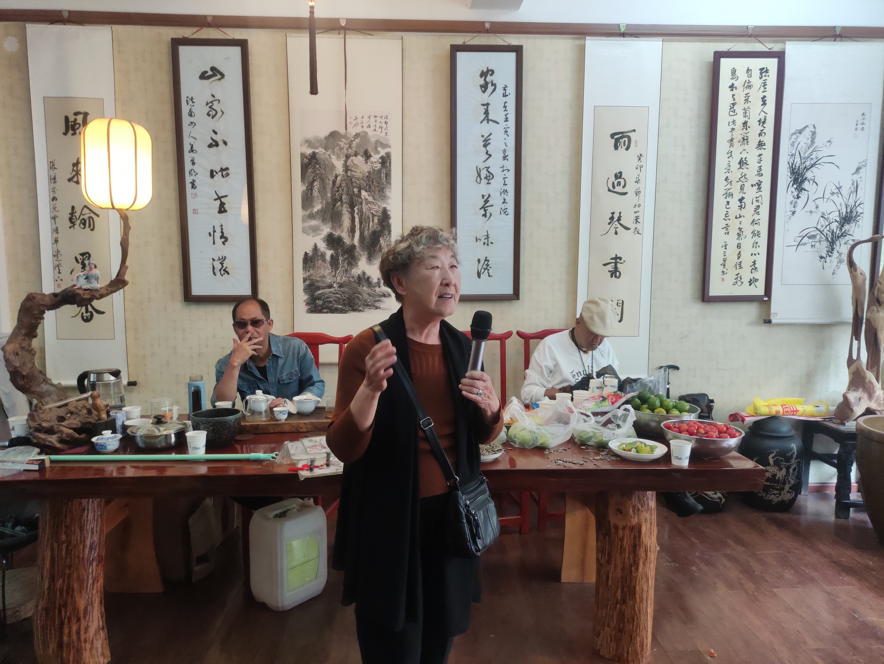 要说起云湖书院,确实是上档次,场地室内空气清新,鸟语花香,很有书香气味。著名普洱茶茶书主席韩立宇老师,著名书法家马石云老师,著名书法家潘云黔老师,著名画家蔚绍根老师,著名画家周巧林老师,著名书法家田道富和著名画家郑连云老师,等等名家老师们到现场展示精品之作,简直就是锦上添花。